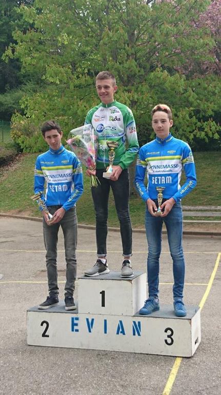 - Vilette sur Ain, lundi 17 avril : En Cadets, Eliot VERNIENGEAL termine 10e, un peu fatigué de la veille. En 3/J, Joao DA SILVA, finit 40e et Kévin NOYELLE 58e après s’être bien battu. En Pass’ D3/D4, pour sa première course, Grégory ODE monte sur la 3e marche du podium.