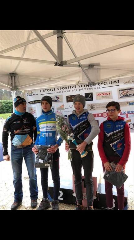 - Cyclo-Cross de la Balme de Sillingy, dimanche 2 décembre: Belle performance de notre cadet Louis CARDOSO car en effet il monte sur la 2e marche du podium. En Juniors, Jérémie LAUSENAZ et Kilyan ELAIN terminent respectivement 7e et 8e. En Séniors, Bryan CRUMP casse son câble de dérailleur avant à 5 minutes du départ et est contraint à faire la course en mono-plateau. Malgré cet incident, il termine 33e d'une course avec un beau niveau.